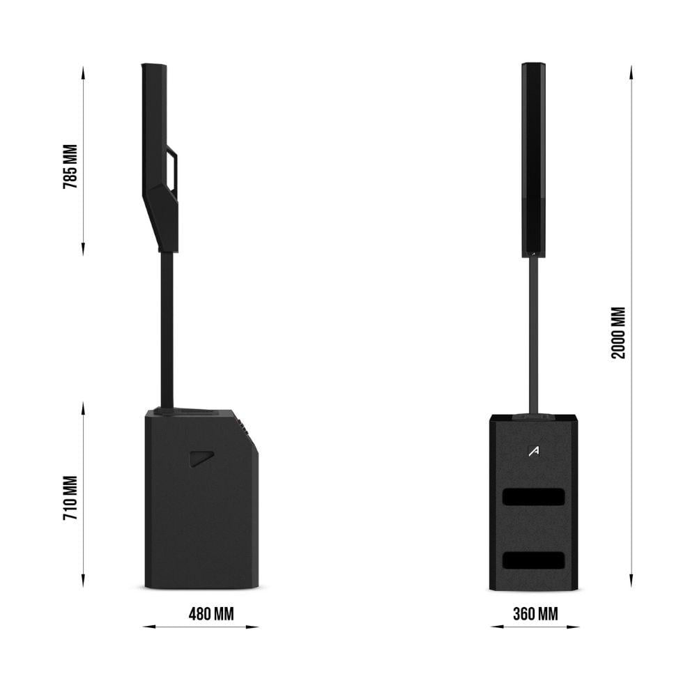 - يتميز نظام صوتي عمودي بمعالجة صوتية رقمية متطورة عبر DSP-100 بدقة 24-بت وبتردد 96 كيلوهرتز مع 3 أوضاع تشغيل (Monitor – DJ – Live) لتناسب مختلف البيئات. كما يدمج تقنية البلوتوث لسهولة الربط مع الأجهزة الذكية، بجانب مداخل ومخارج احترافية XLR وJack.