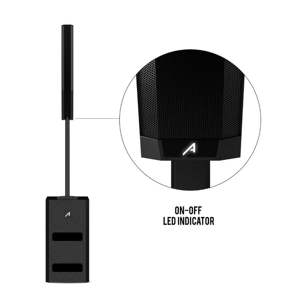 - يتكون النظام من عمود صوتي يحتوي على 8 سماعات بقياس 3 بوصة مع ملف صوتي 20 مم، ما يوفر وضوحًا ممتازًا للترددات العالية.