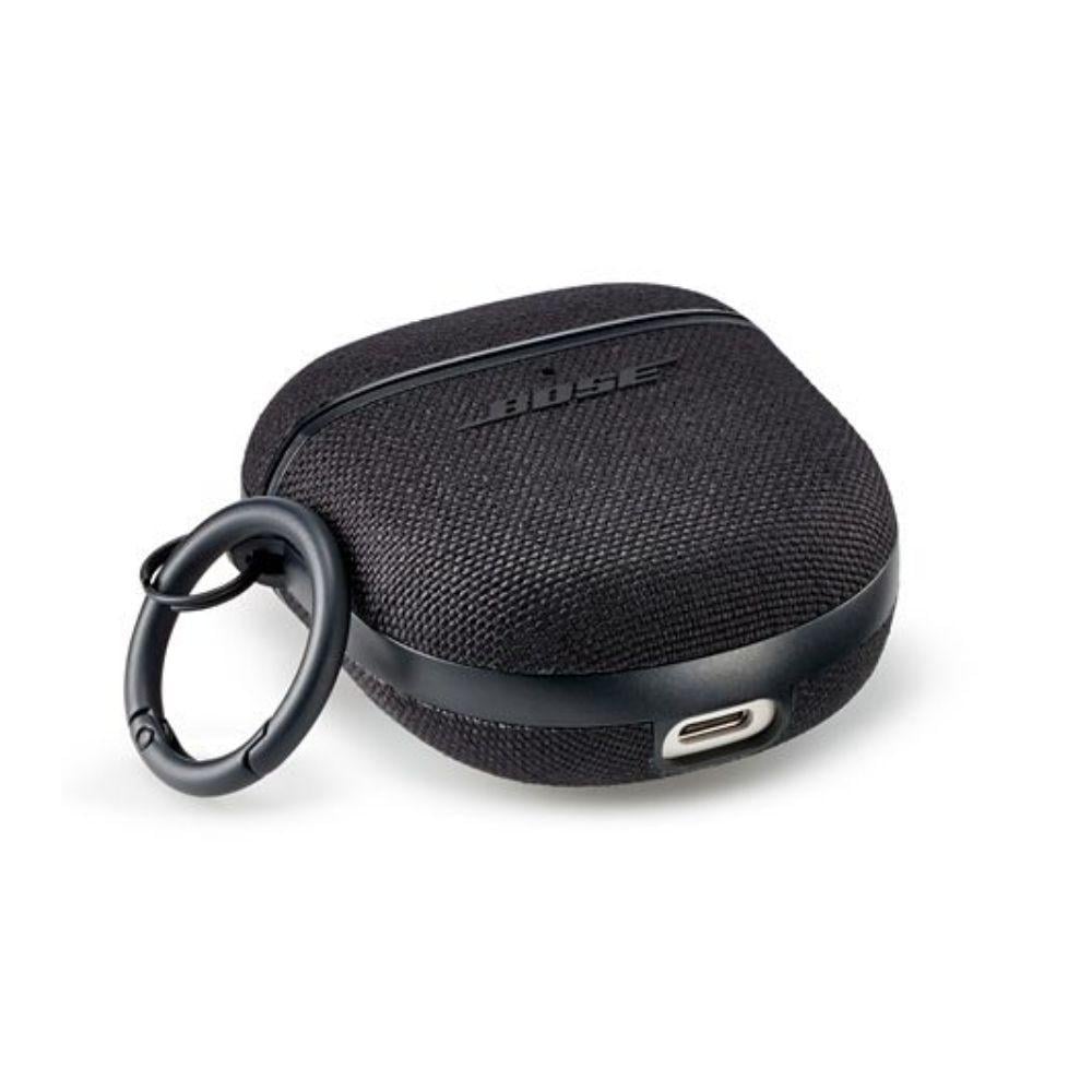 غطاء حماية من قماش لحماية سماعات QuietComfort Earbuds II تصميم قماشي أنيق مع مشبك معدني لحماية وأناقة في كل مكان لون أسود ثلاثي Bose