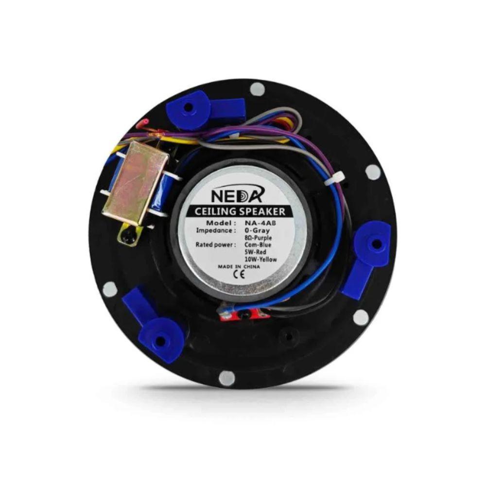 - سماعات سقفية NEDA NA-4AB تمنحك مزيجاً مثالياً من الأداء القوي، التصميم الأنيق، وسهولة التركيب، مما يجعلها خياراً مميزاً للمساحات السكنية والتجارية.