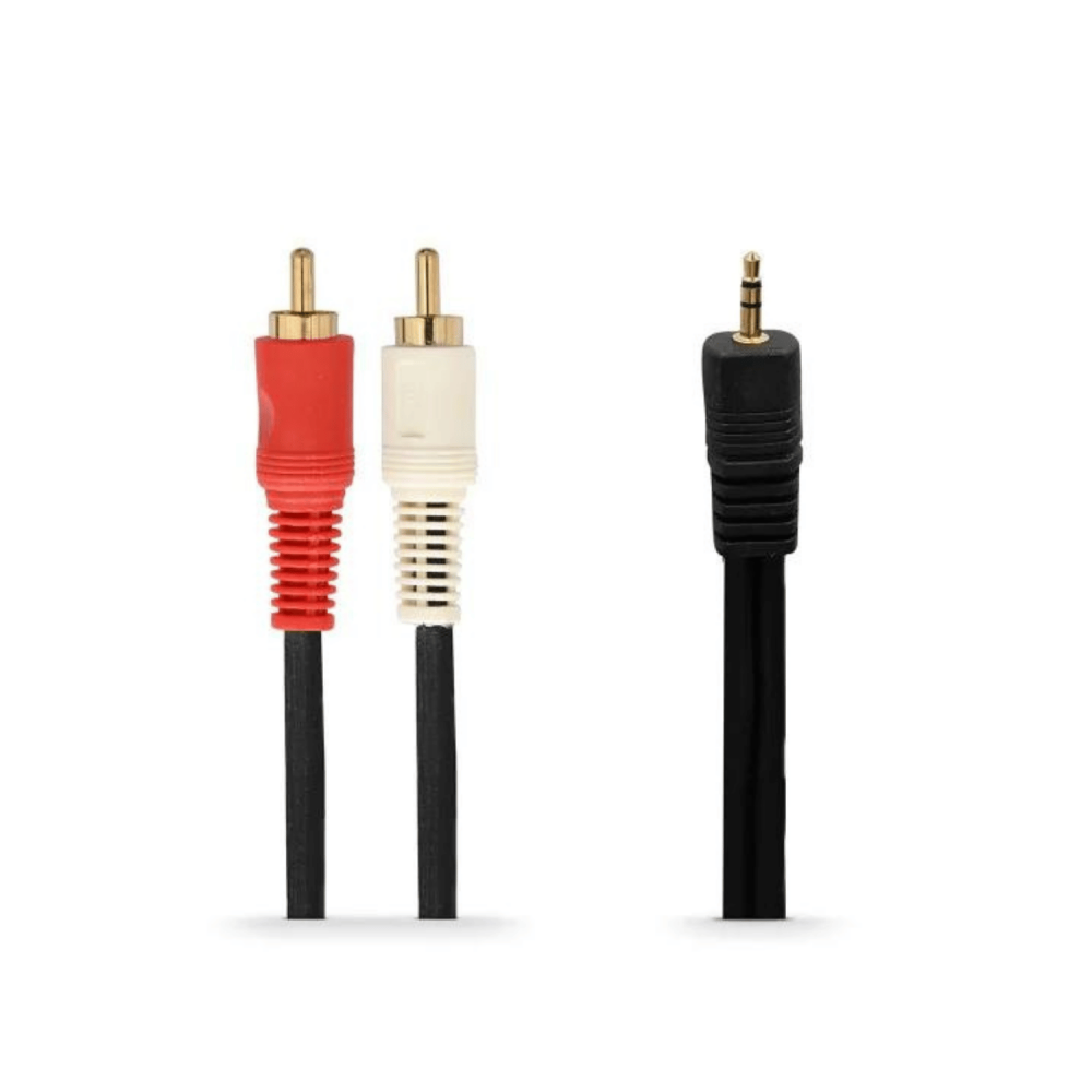- الطرف الثاني: مقبس 2xRCA (يمين/يسار) متوافق مع الأنظمة الصوتية ومكبرات الصوت
