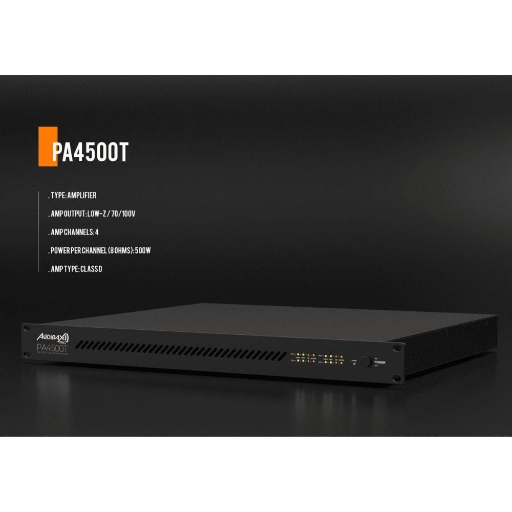 جهاز امبلي فاير ماركة Audibax احترافي 4 قنوات قدرة 500 وات لكل قناة مع معالج DSP وتحكم عبر إيثرنت موديل PA4500T