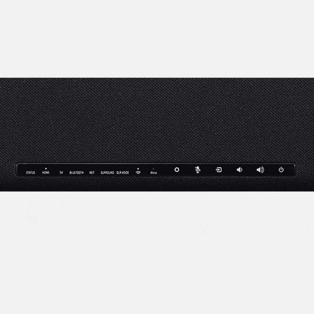 المواصفات التقنية: المشغلات: Front L/R: مخروط 5.5 سم × 2 / Tweeter: قبة 2.5 سم × 2مضخمات الصوت المدمجة: مخروط 7.5 سم × 2قوة الإخراج : إجمالي 120 واط / 30 واط × 2 للقنوات الأمامية (اليسار/اليمين) / 60 واط لمضخمات الصوت المدمجةاستهلاك الطاقة : أثناء التشغيل 30 واط (مصنّف)، 4.3 واط (جاهز للتحكم الصوتي)في وضع الاستعداد: 0.2 واط (عند إيقاف تحكم HDMI وNetwork Standby) / 1.7 / 1.9 / 1.7 واط (عند إيقاف تحكم HDMI وتشغيل Network Standby [سلكي / Wi-Fi / Bluetooth]) / 0.6 واط (عند تشغيل تحكم HDMI وإيقاف Network Standby) / 2.2 واط (عند تشغيل تحكم HDMI وNetwork Standby)الأبعاد (عرض × ارتفاع × عمق): عند وضعه أمام التلفاز: 890 مم × 53 مم × 131 مم (35 بوصة × 2-1/8 بوصة × 5-1/8 بوصة) / عند التثبيت على الحائط مع الفواصل: 890 مم × 131 مم × 63 مم (35 بوصة × 5-1/8 بوصة × 2-1/2 بوصة)الوزن: 3.4 كجم (7.5 أرطال)المدخلات والمخرجات: HDMI: مدخل واحد / مخرج واحدمدخل بصري رقمي: 1 مدخلمخرج مضخم صوت: نعمدعم HDMI: تمرير 4K: نعم (50 / 60 هرتز YCbCr=4:4:4، HDR10، HLG وHDCP 2.3)تمرير 3D: نعمARC (قناة إرجاع الصوت): نعمCEC (تحكم إلكترونيات المستهلك): نعمAuto Lip-Sync: نعمتقنية الصوت المحيطي الافتراضي: DTS® Virtual™أوضاع الصوت: موسيقى، برنامج تلفزيوني، فيلم، رياضة، لعبةمعزز الموسيقى المضغوطة: نعم (للاتصال عبر Bluetooth)تمديد الجهير: نعمتنسيقات الصوت المدعومة: Dolby Digital: نعمDolby Pro Logic II: نعمDTS Digital Surround: نعمتنسيقات الملفات: WAV (تنسيق PCM فقط)، FLAC حتى 192 كيلوهرتز، ALAC حتى 96 كيلوهرتز، MP3 / WMA / MPEG-4 AAC حتى 48 كيلوهرتز