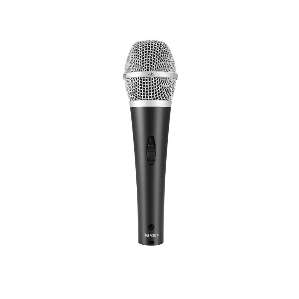 - TG V35 s هو ميكروفون ديناميكي احترافي تم تصميمه لمن يبحثون عن جودة صوت عالية ونقاء صوتي في الأداء الحي أو التسجيل. يوفر نمط Supercardioid مستوى عالي من العزل مع تقليل الضوضاء الخارجية، ما يجعله اختيارًا ممتازًا للعروض المباشرة أو الاستخدام في المسارح والفعاليات.