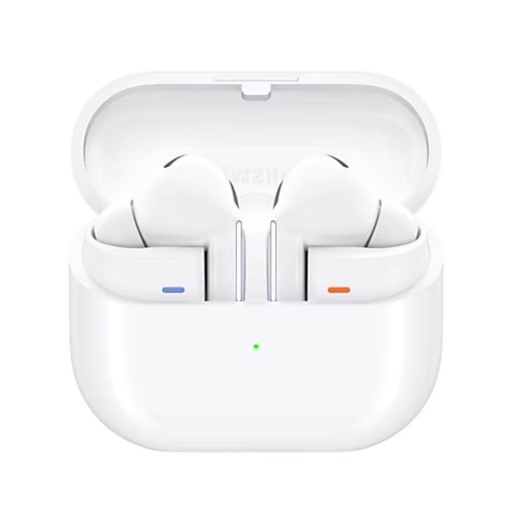 سماعات أذن لاسلكية تصميم مبتكر وصوت مزدوج الوضوح ماركة Samsung مع تحكم باللمس والإيماءات لون أبيض موديل Galaxy Buds3 Pro W