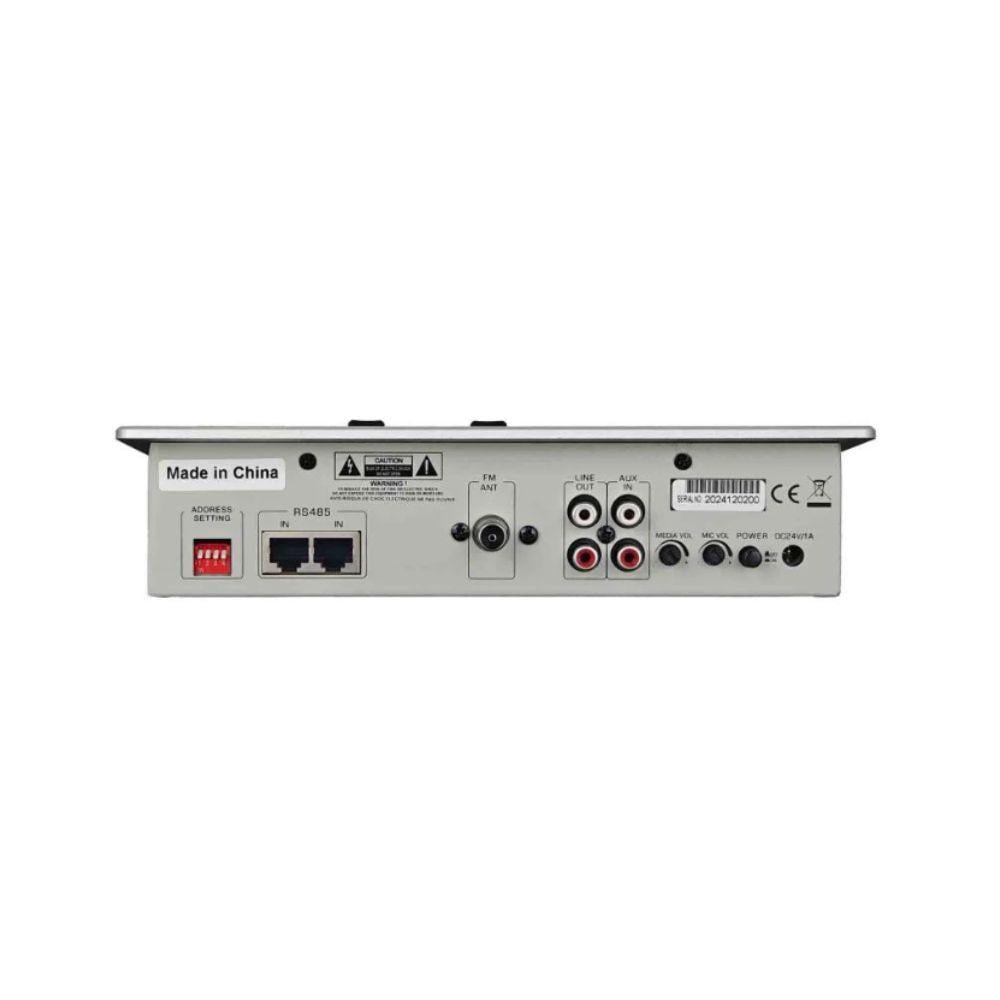 - يأتي ميكروفون حساس مكتبي من نوع "نداء متعدد النطاقات"، ويدعم مدخلات USB، AUX، FM، وBluetooth، مما يجعله مرنًا في استقبال الصوت من عدة مصادر. يتصل بوحدة توزيع السماعات لتوجيه الصوت إلى مناطق منفصلة عبر 4 قنوات مستقلة. يدعم تشغيل الطاقة عبر مصدر 24 فولت 1 أمبير، ويتميز بنسبة إشارة إلى ضوضاء تصل إلى 60 ديسيبل، ما يضمن نقل صوت نقي وواضح.