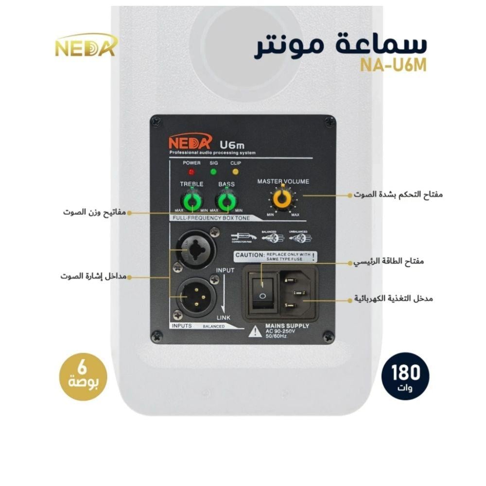 سماعات جدارية مونيتور 180 وات احترافية 6 بوصة ماركة نداء مثالية للإمام والمسارح لون أبيض موديل U6MWتعتبر سماعات مونيتور الأمامية NEDA U6MW اختياراً مث...