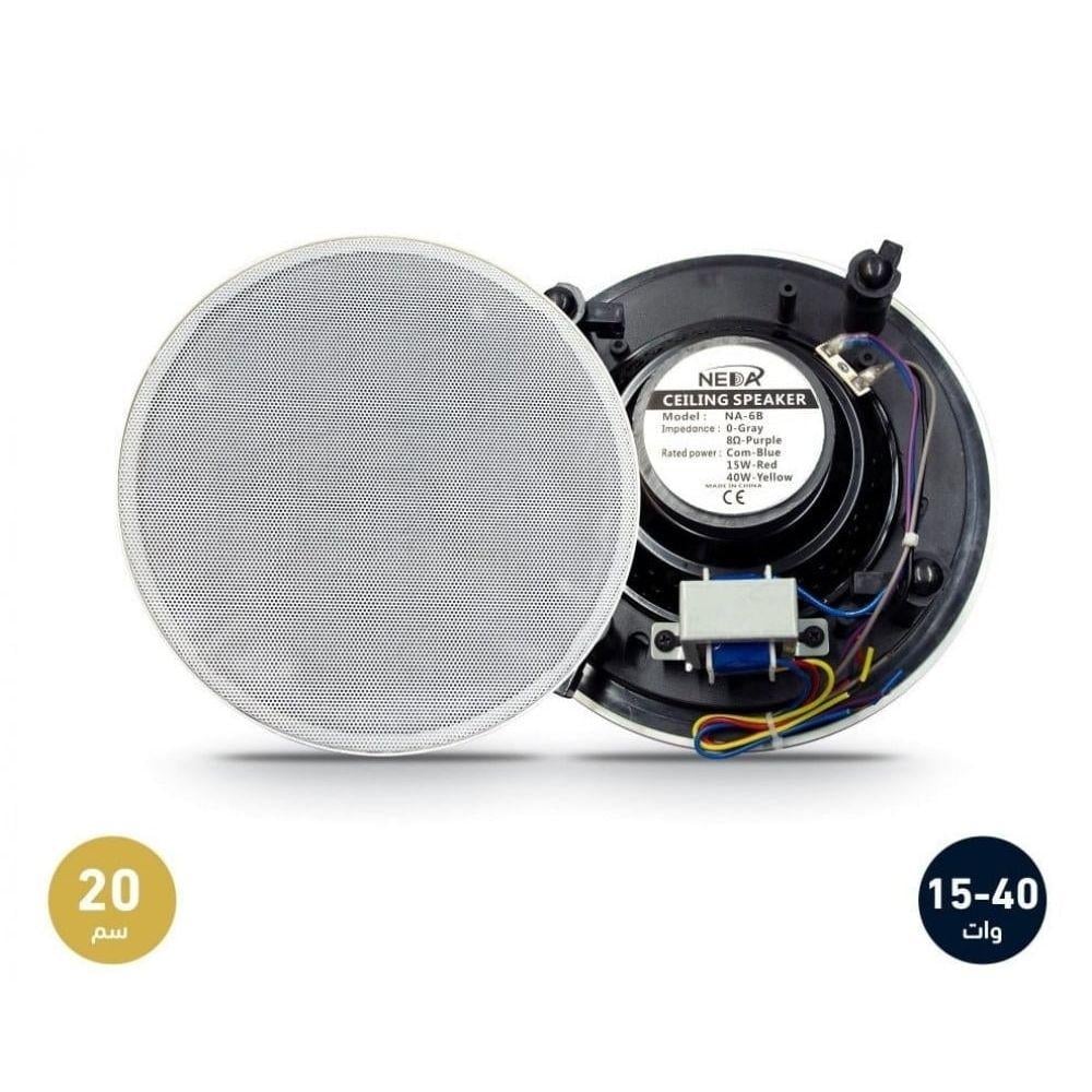 سماعات سقفية ماركة نداء مقاس 20 سم 15-40 وات صوت نقي وتصميم راقٍ يناسب الممرات والفصول والمنازل موديل NA-6B