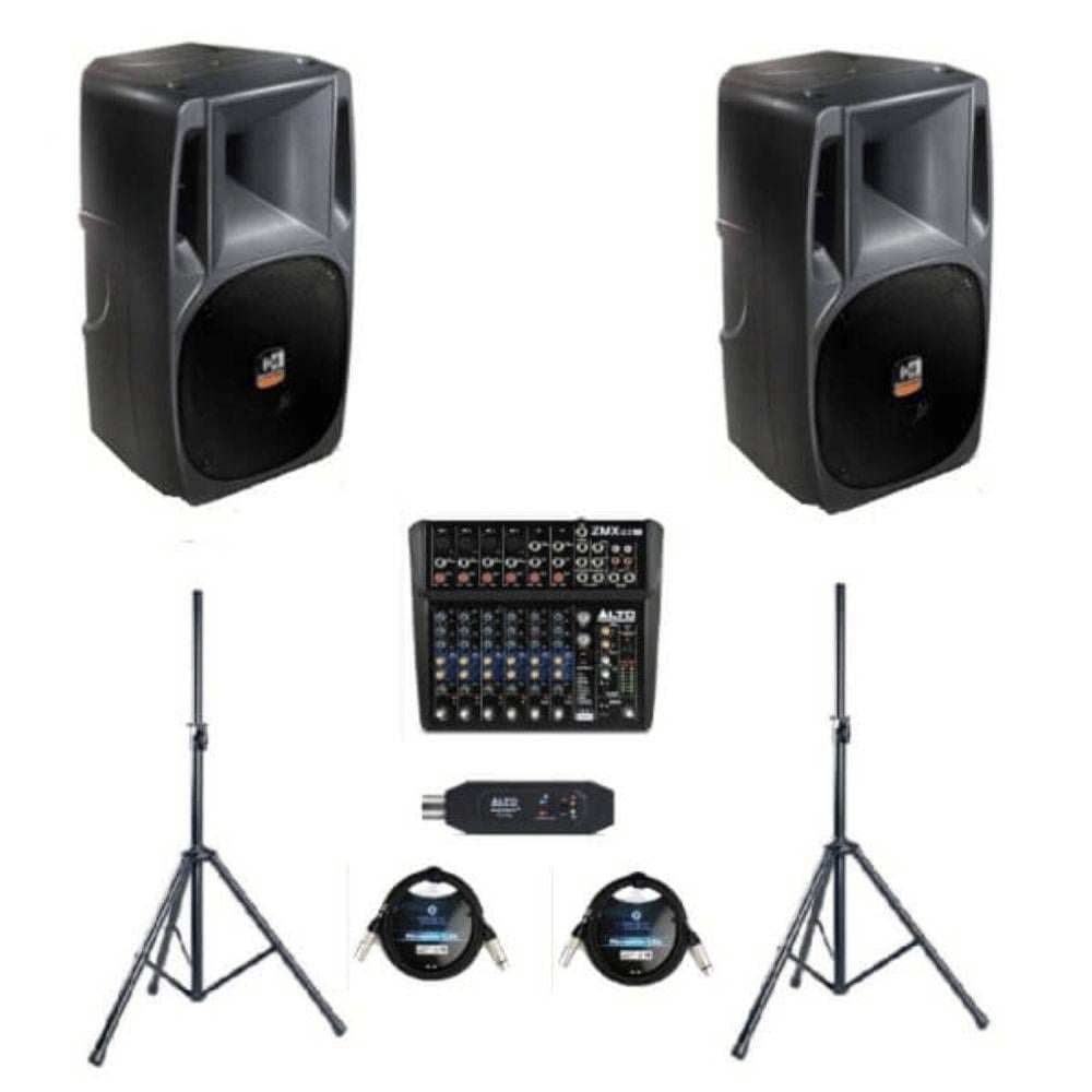 سماعات كبيره مونتاربو NM250A هي سماعات كهربائية ثنائية معززة بقدرة 400 واط وتستخدم مكبرات صوت 8 بوصة مع مشغل ضغط 2 بوصة، ما يتيح لها تقديم 121 ديسيبل SPL من الصوت الجهير العميق. تم تجهيز النظام بتقنية DSP المتقدمة التي تستخدم فلاتر FIR لضمان أداء صوتي متوازن وسلس. مع ميكسر ألتو Live-802، يمكنك الاستفادة من 5 مدخلات XLR للميكروفونات ومعالج ديناميكي لضبط الصوت. يتيح لك هذا الميكسر أيضًا تحكم دقيق في الترددات عبر موازن 9 نطاقات لتحسين الصوت حسب الحاجة. بالإضافة إلى ذلك، يتيح لك محول البلوتوث توصيل الأجهزة لاسلكيًا بسهولة لتشغيل الصوت.