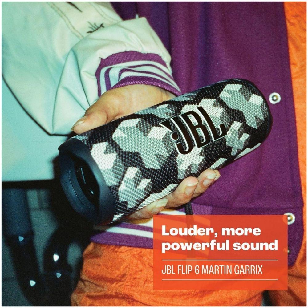 - سماعات متنقلة JBL Flip 6 Martin Garrix Edition هو أكثر من مجرد مكبر صوت، إنه تجربة فنية وصوتية متكاملة تجمع بين التصميم الجذاب والأداء الاحترافي. مثالي لمحبي الموسيقى الذين يبحثون عن الجودة والتفرد.