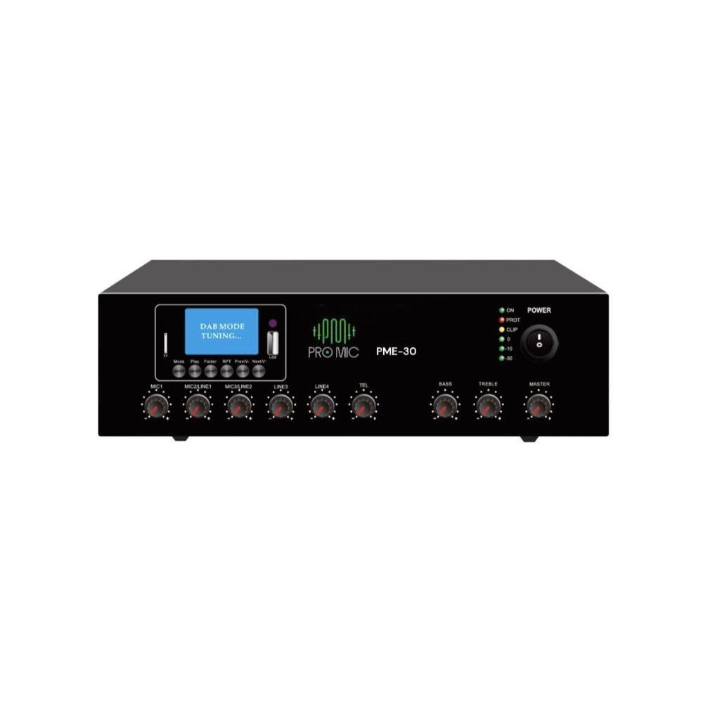 - PME-30 هو جهاز امبلي فاير قدرة 30 واط مصمم لتقديم صوت قوي وواضح في البيئات الداخلية. يتمتع بمرونة في مصادر التشغيل من خلال البلوتوث، USB، والراديو FM، بالإضافة إلى تعدد خيارات الإدخال، ودعم مخرجات مختلفة لتناسب أنظمة السماعات المتعددة.