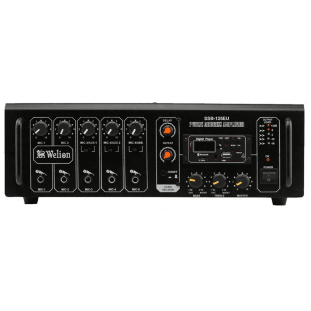 مضخم الصوت Welion SSB-125EU هو جهاز صوت احترافي قوي مصمم لتلبية احتياجات تشغيل الصوت في berbagai الأماكن والتطبيقات. يوفر هذا المضخم مجموعة متنوعة من الميزات بما في ذلك القدرة على تشغيل الموسيقى من مصادر متعددة، ومقابلة الميكروفونات، وضبط الصوت بمستويات عالية من الدقة.