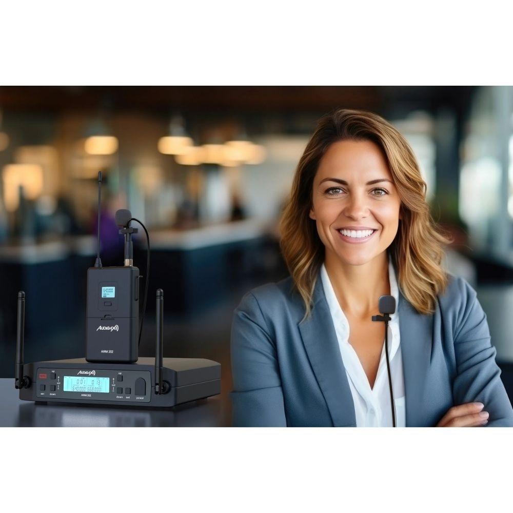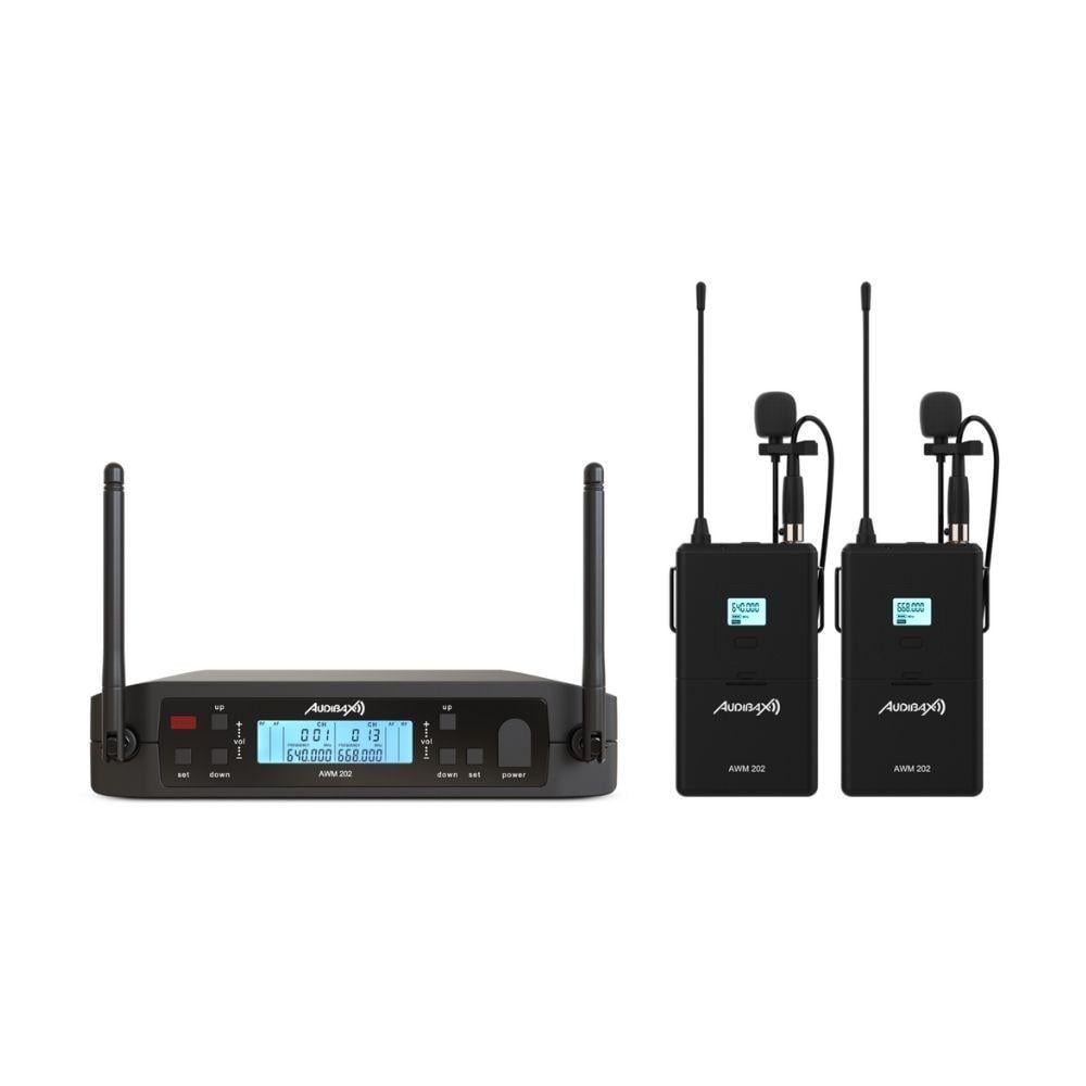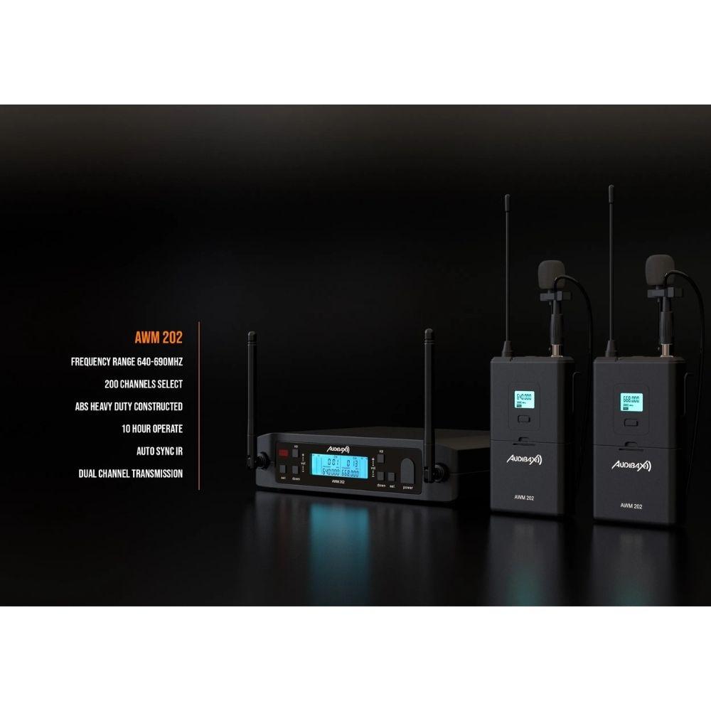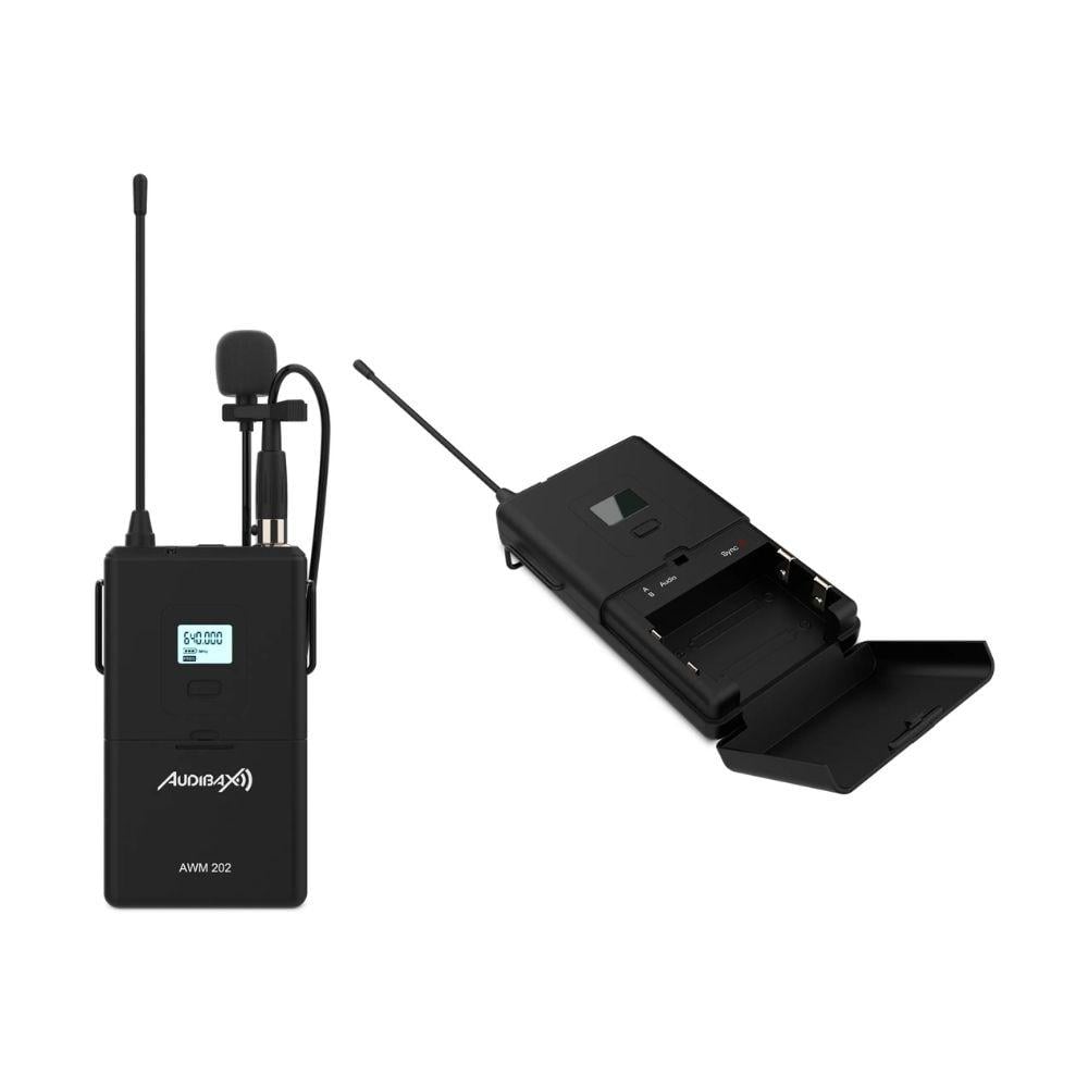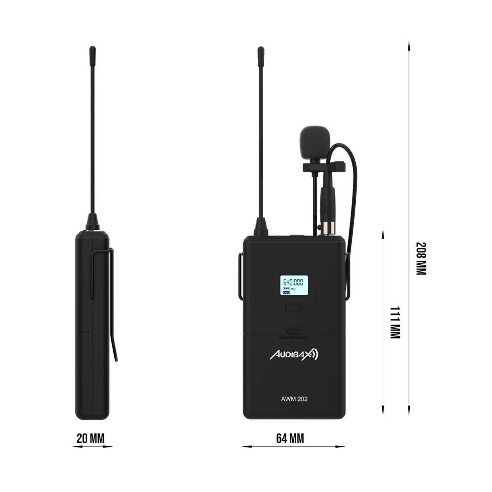 ميكروفون عنق لاسلكي Lavalier AWM 202 بنطاق ترددي واسع و200 قناة قابلة للتعديل ماركة Audibaxيمنحك ميكروفون عنق صغير Audibax AWM 202 الحرية الكاملة للتع...