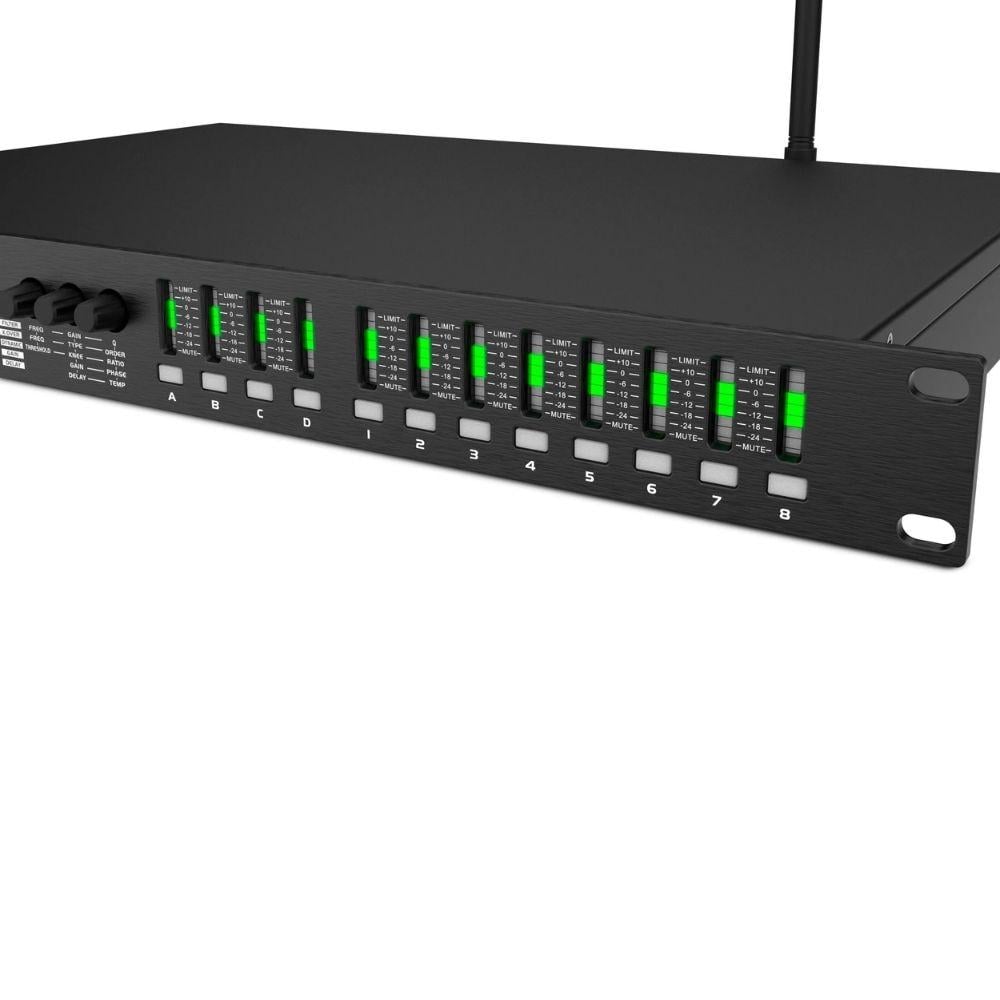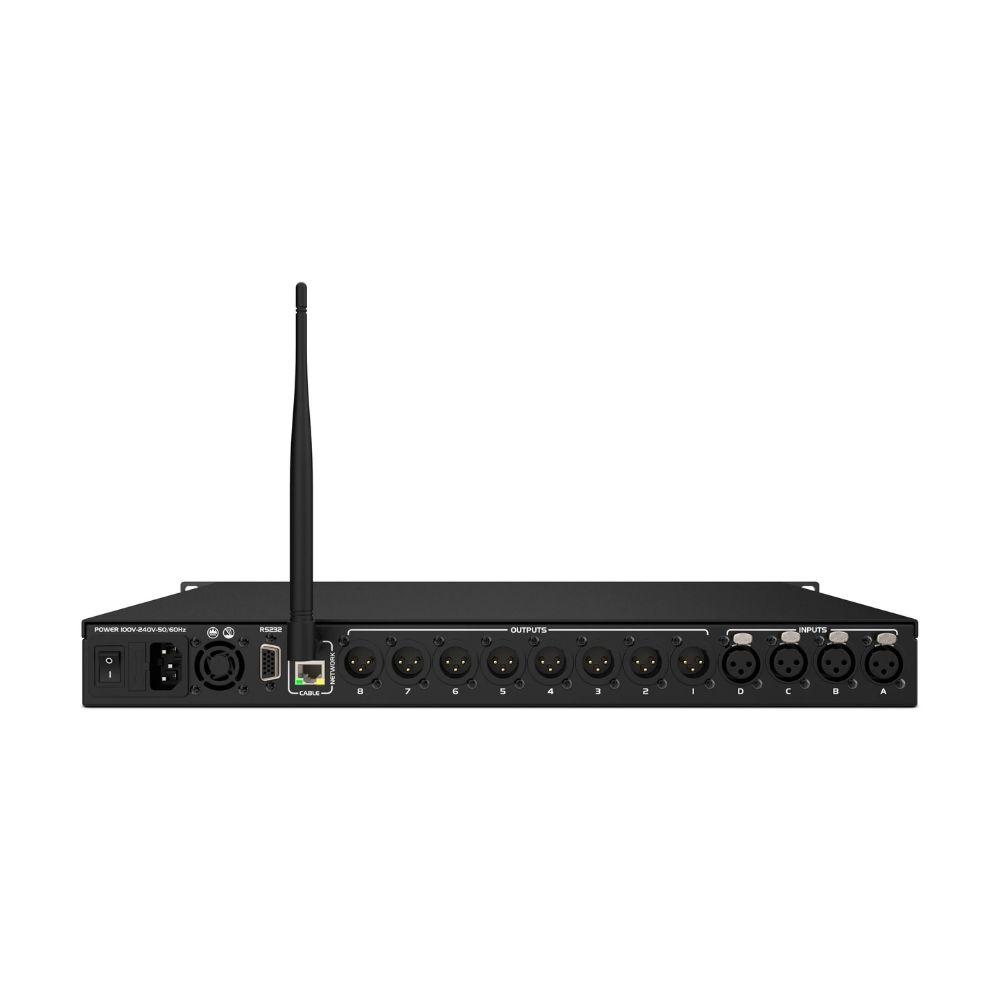 - يوفر معالج صوت رقمي مرونة كاملة عبر 8 قنوات خرج و 4 قنوات إدخال Line/Mic، مما يجعله مثاليًا لإدارة الأنظمة الصوتية الكبيرة والمعقدة مثل القاعات، المسارح، الاستوديوهات، والفعاليات الضخمة.