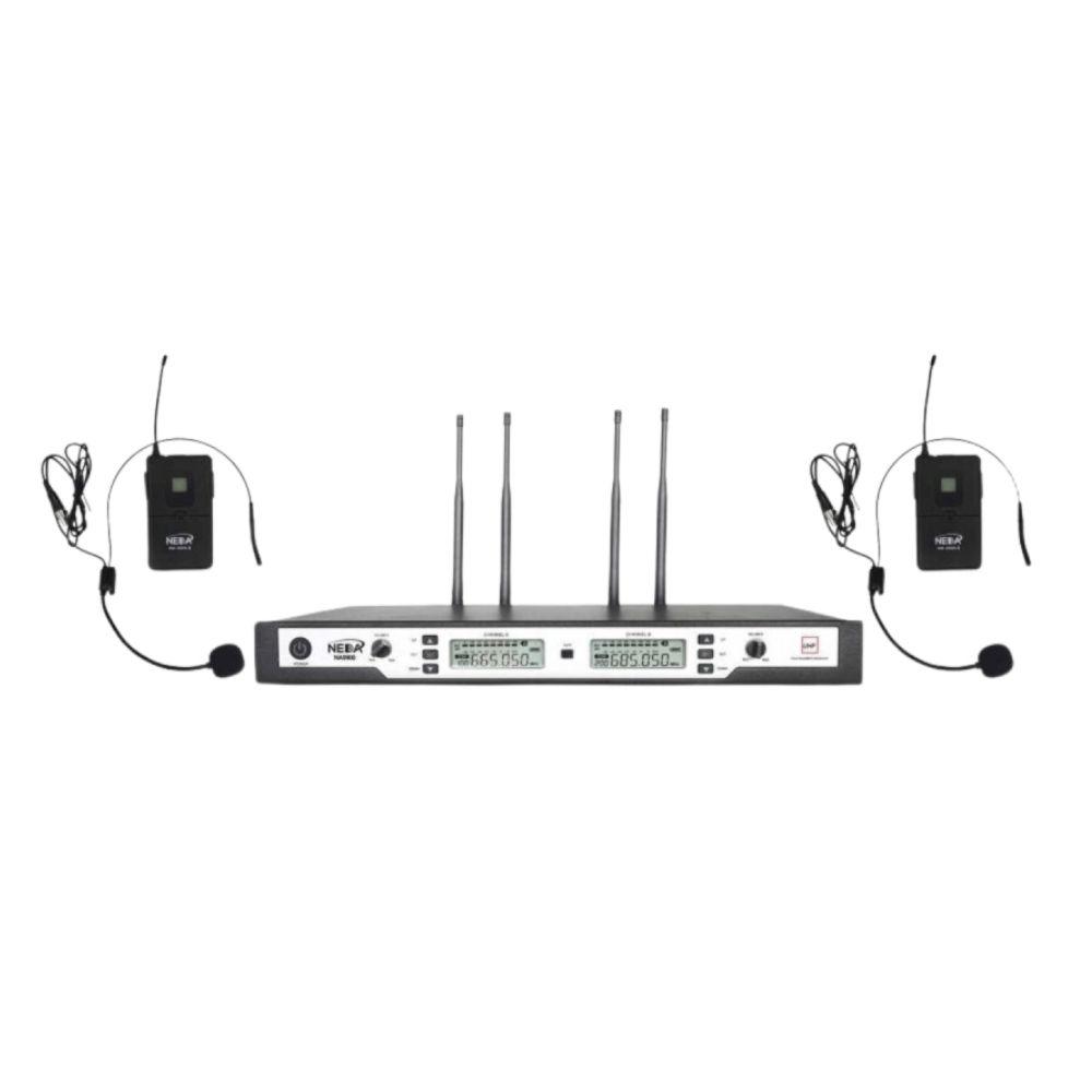 ميكروفون لاسلكي مزدوج علاقي ماركة NEDA إحترافي مدى 200 متر موديل NA-9900C