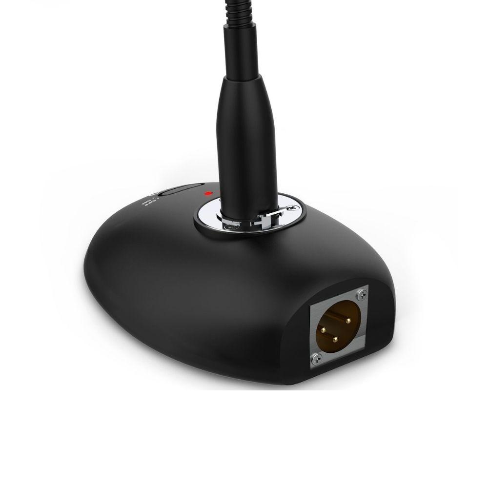 - ميكروفون ديناميكي مزود بمؤشر ضوئي LED لتوضيح حالة التشغيل (ON/OFF)، إلى جانب مفتاح إلكتروني يعمل باللمس لتوفير تحكم مريح وسريع. يأتي مع كابل طوله 7 أمتار بتوصيل XLR مزدوج (أنثى/ذكر)، مما يمنح مرونة في التثبيت وربط الميكروفون بمختلف أنظمة الصوت.