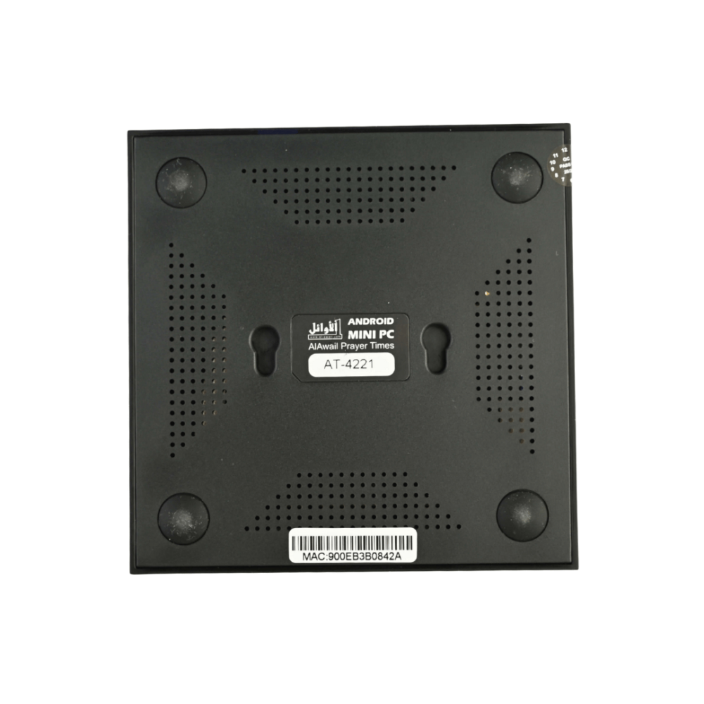 It's a small computer (Android Mini PC) that attaches to any HDMI-enabled display, transforming it into a smart platform that accurately displays prayer times in an elegant design, along with the ability to display religious content (images, videos, and alerts), all remotely controlled. (Custom features available upon request.)
