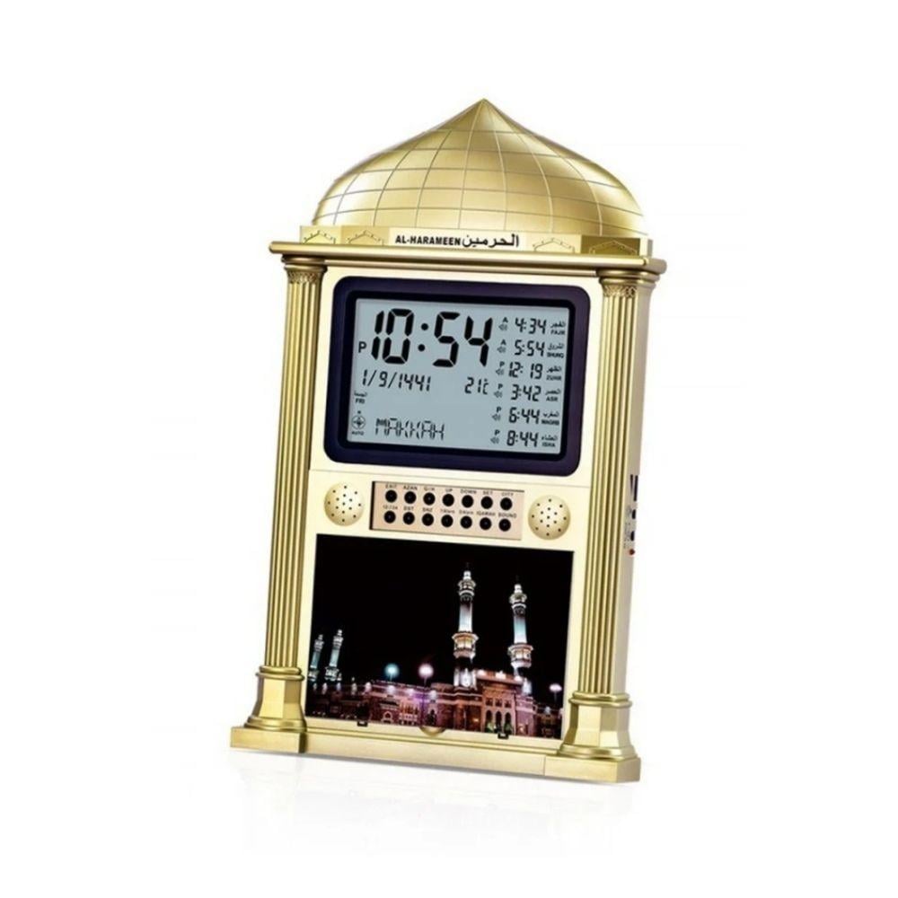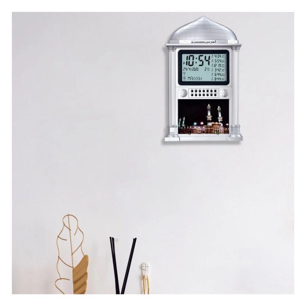 - The Al-Harameen HA-4002 Wall Clock is a distinctive digital clock that combines practical design with advanced performance. Thanks to its wide display, it clearly displays the five daily prayer times, complete with the call to prayer, making it an ideal choice for mosques, homes, and offices.